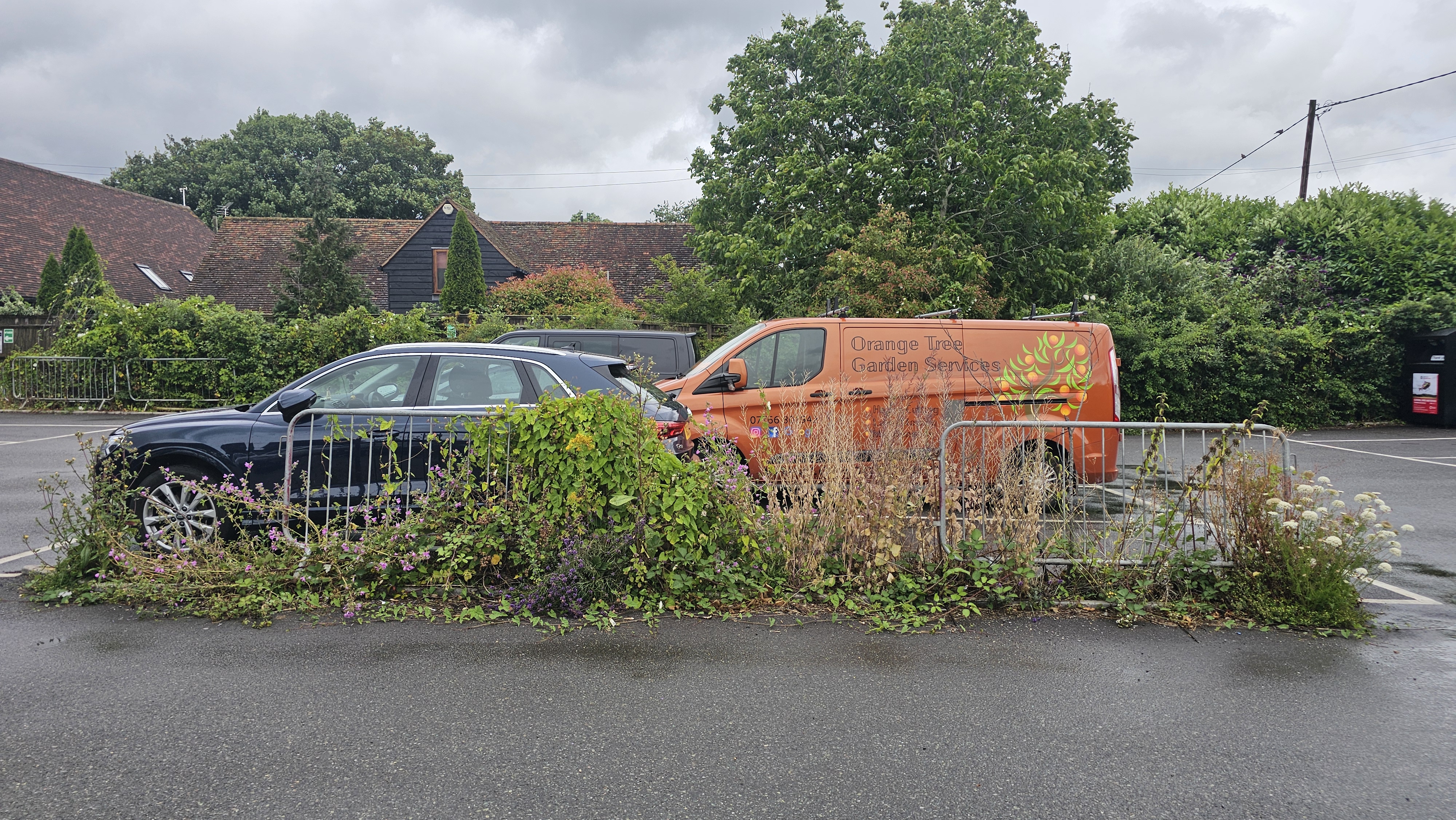 I got to work on the car park before and after my daily Orange Tree work. With late summer evenings and an empty car park after 6pm, most of the clearance was completed in a week.